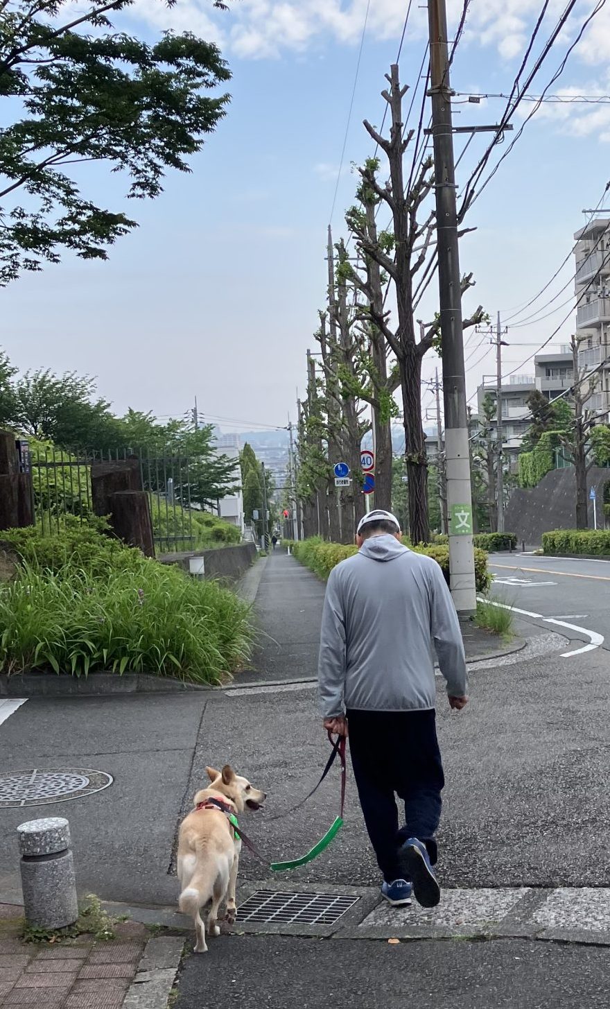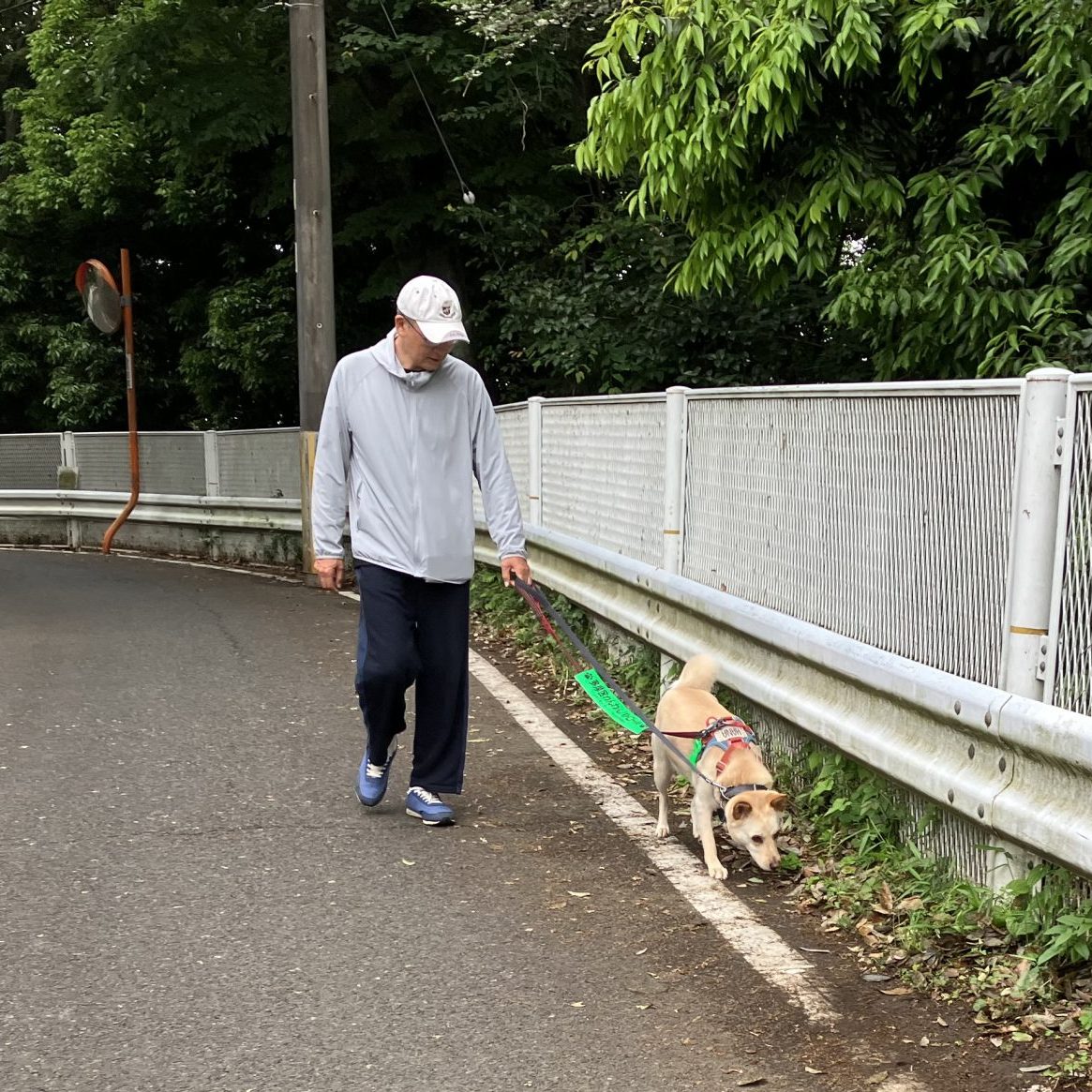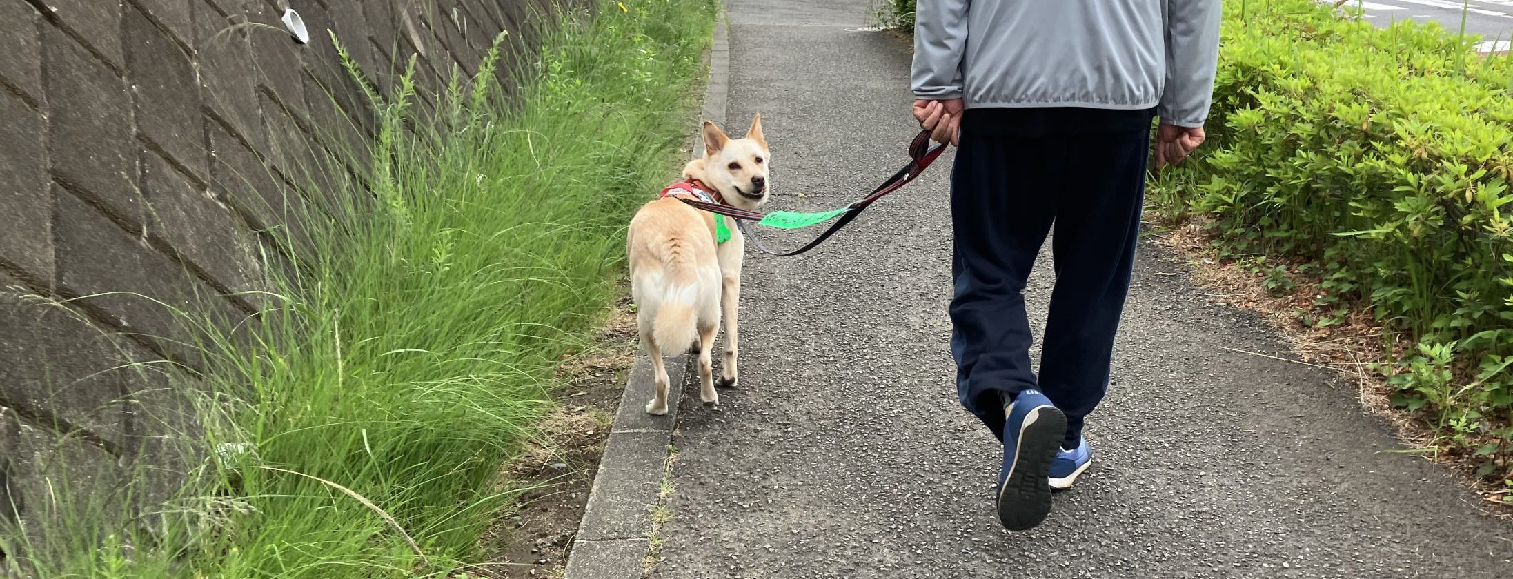 お散歩前半は尻尾もクルンと上がってご機嫌なハナでした。