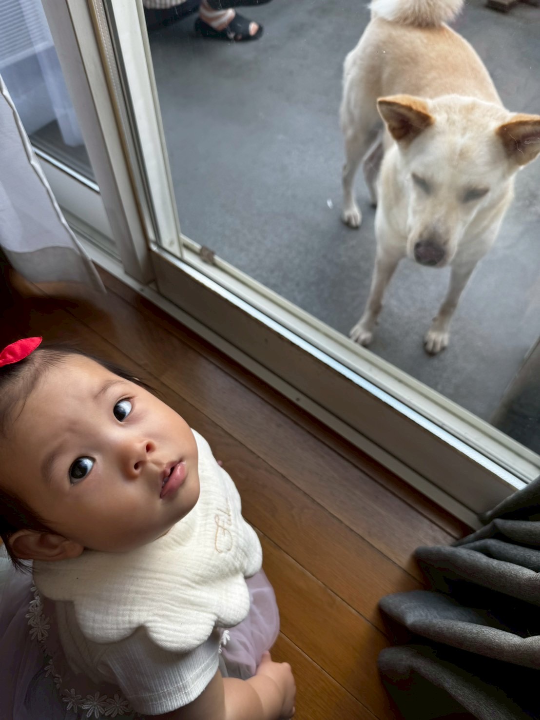 ハナはビビりなので、サトミちゃんのこともそーーっと見る感じなので