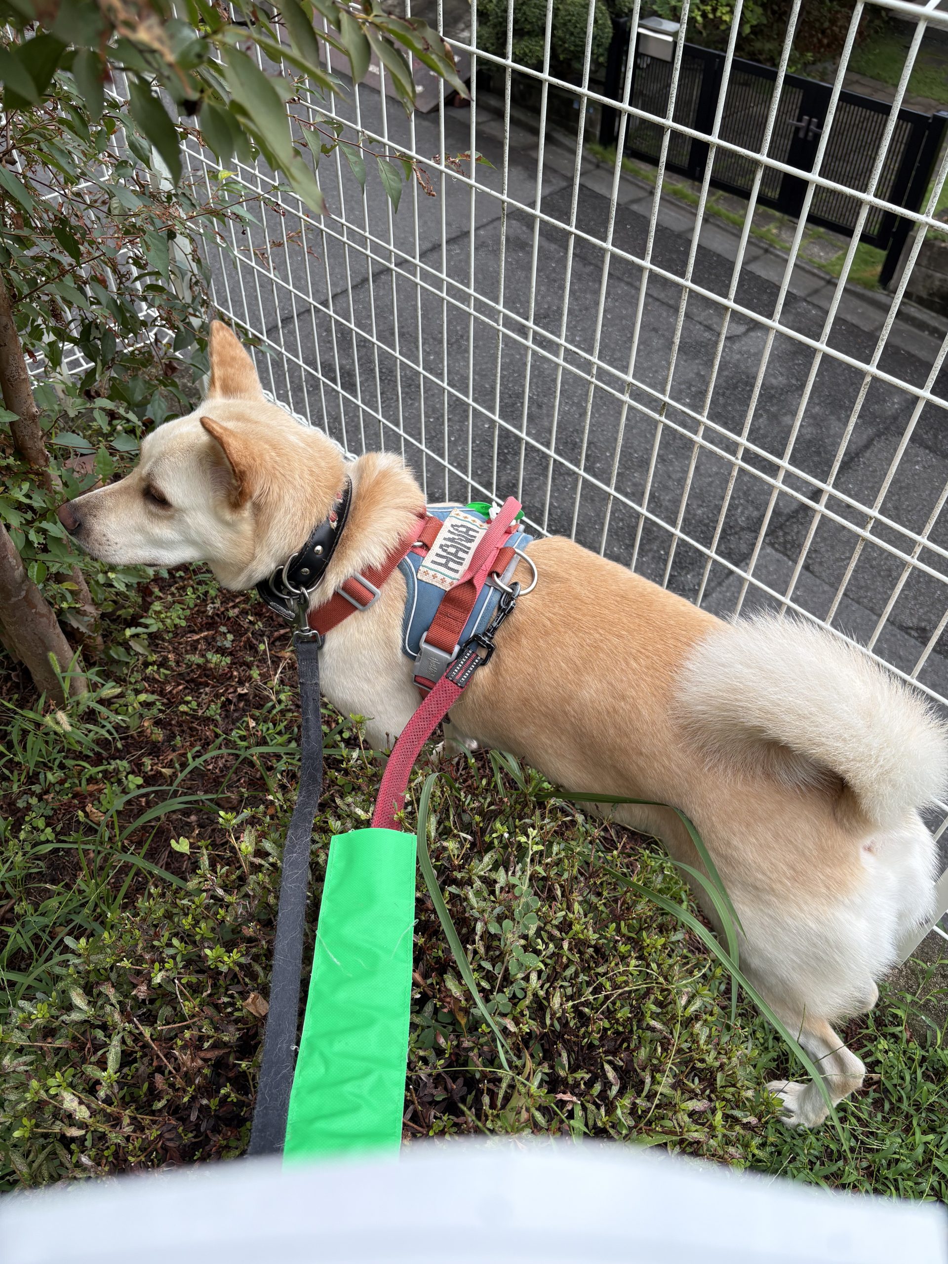 ハナの日々 今朝はなんとか少しの晴れ間。雨が降ったり止んだりなので、その間隙を縫ってのお散歩。