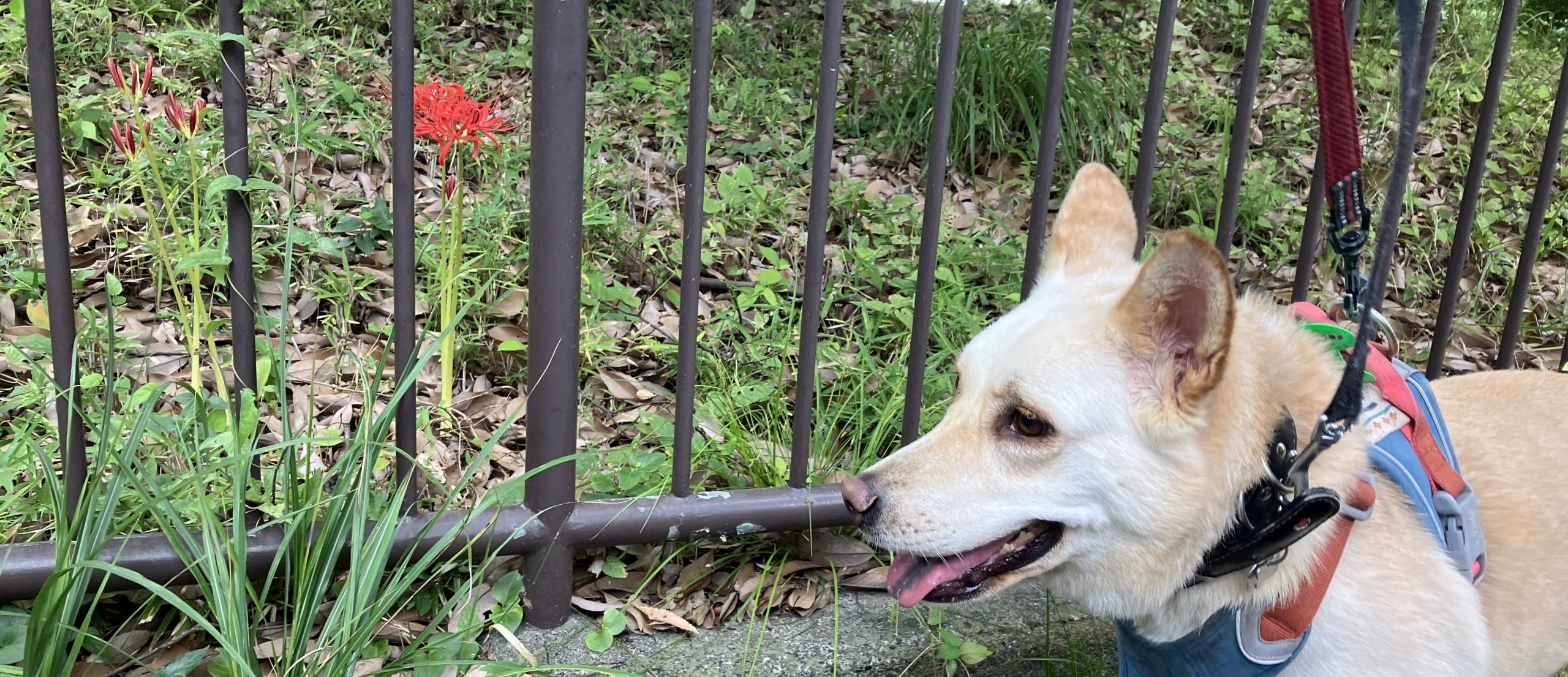 ヒガンバナ見つけたのでハナとパチリ。