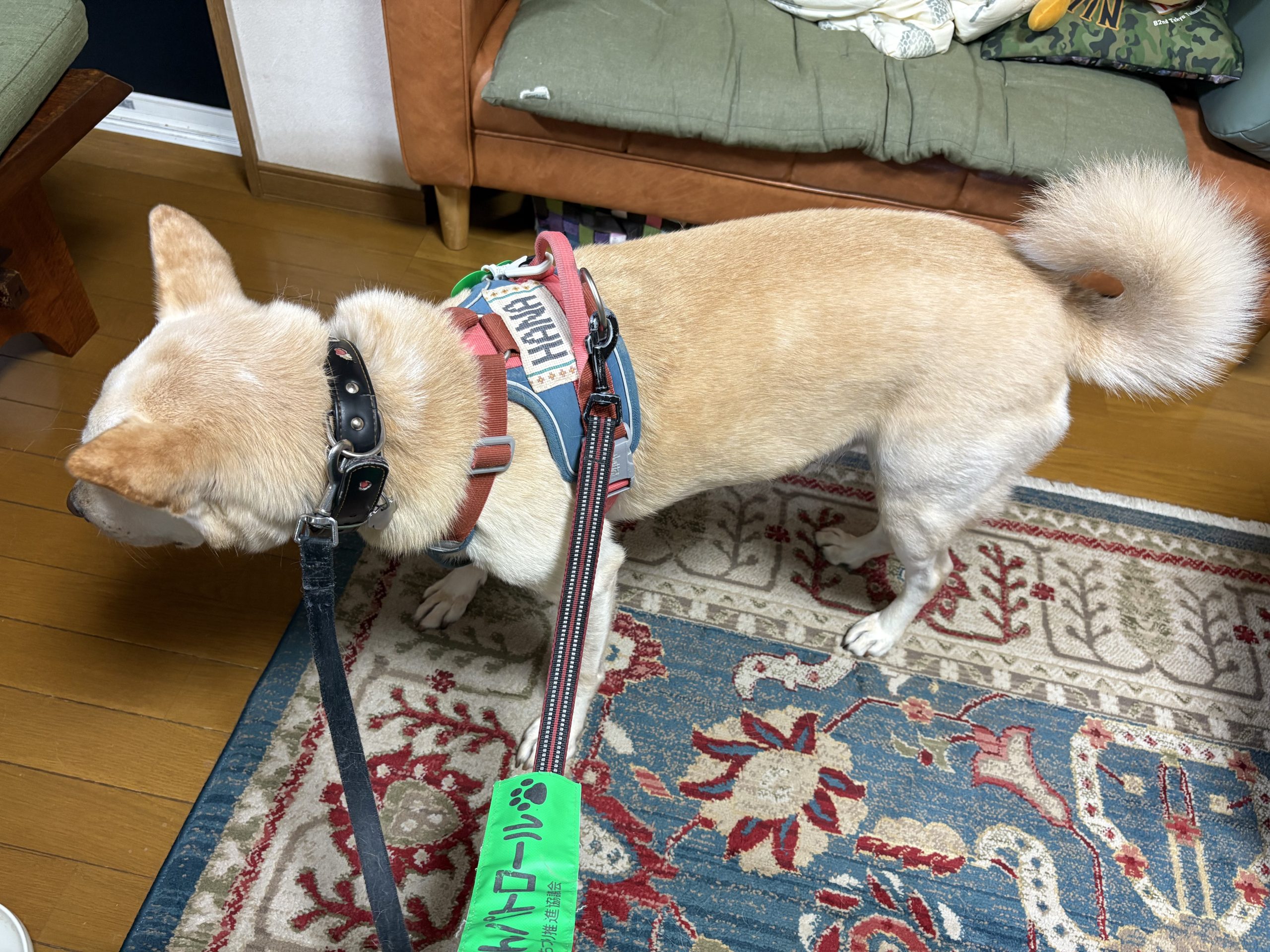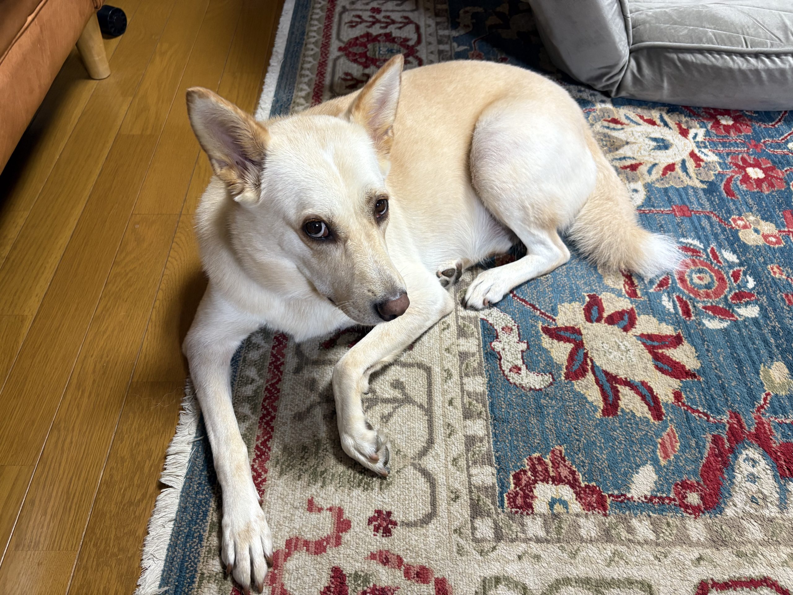 【ハナ*うちに来て4年244日目】名月 Uncategorized 2025.10.08 朝の散歩前。どこでウ○チしようか悩むハナちゃん 夜の散歩前。「ハナちゃん、散歩行くよ」「え?行くの?めんどくさいな〜」の顔 「あーあ、よっこいしょっと」だる〜。 とか言いながらお庭でウ○チのあと後足で土をかけるハナちゃん。犬が後足で土をかけるのはウ○チを隠す為じゃなくて、単に匂いを付ける為らしいです。犬の匂いが一番強いのが肉球なんだって。 中秋の名月。じゃないらしいけど、雲の隙間から一瞬見えた月。
