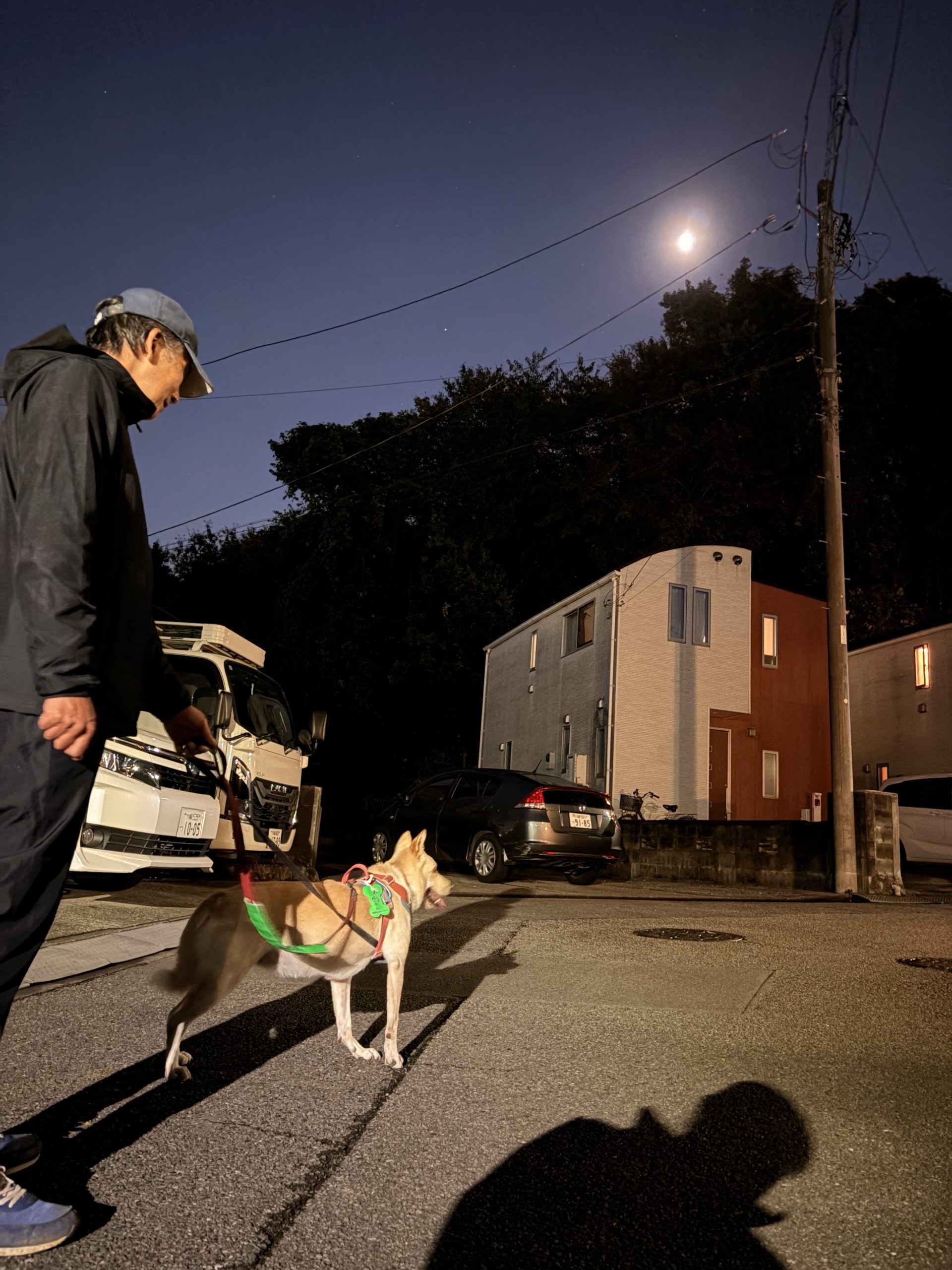 夜の散歩は私も一緒。