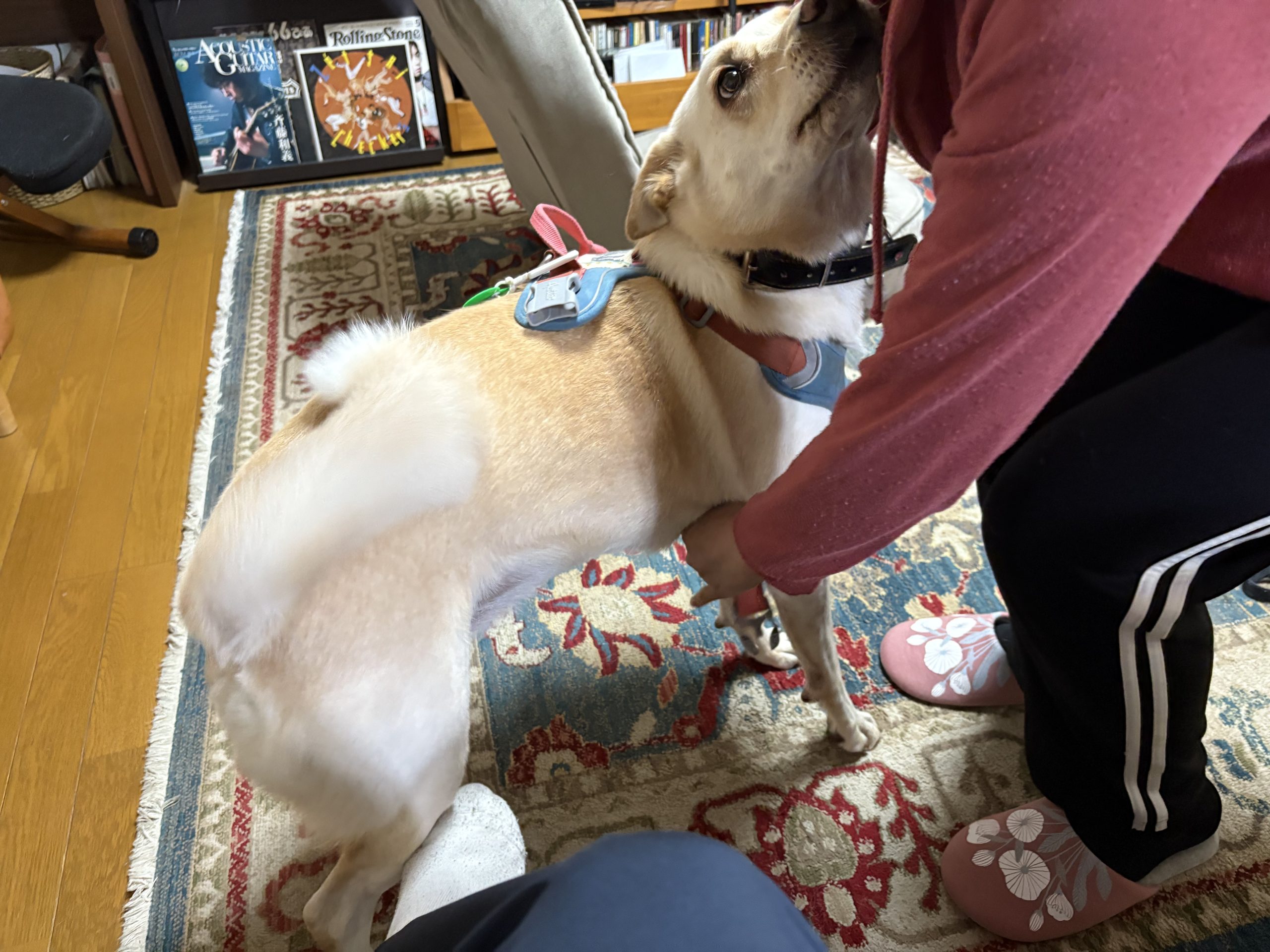 【ハナ*うちに来て4年280日目】御機嫌 ハナの日々 2025.11.13 今日はママと一緒に朝の散歩。やっぱりママと一緒だと御機嫌です。いろんなところを歩き回ります。この後、車が止まっていない駐車場を走ってみました。キツかったですが。 走り回ってます! まだ、走ってます! 夜の散歩の準備。夜もママが一緒なので昨日とは全然違う態度。興奮して尻尾を振り回し、クネクネしてます。 めっちゃ大変です。