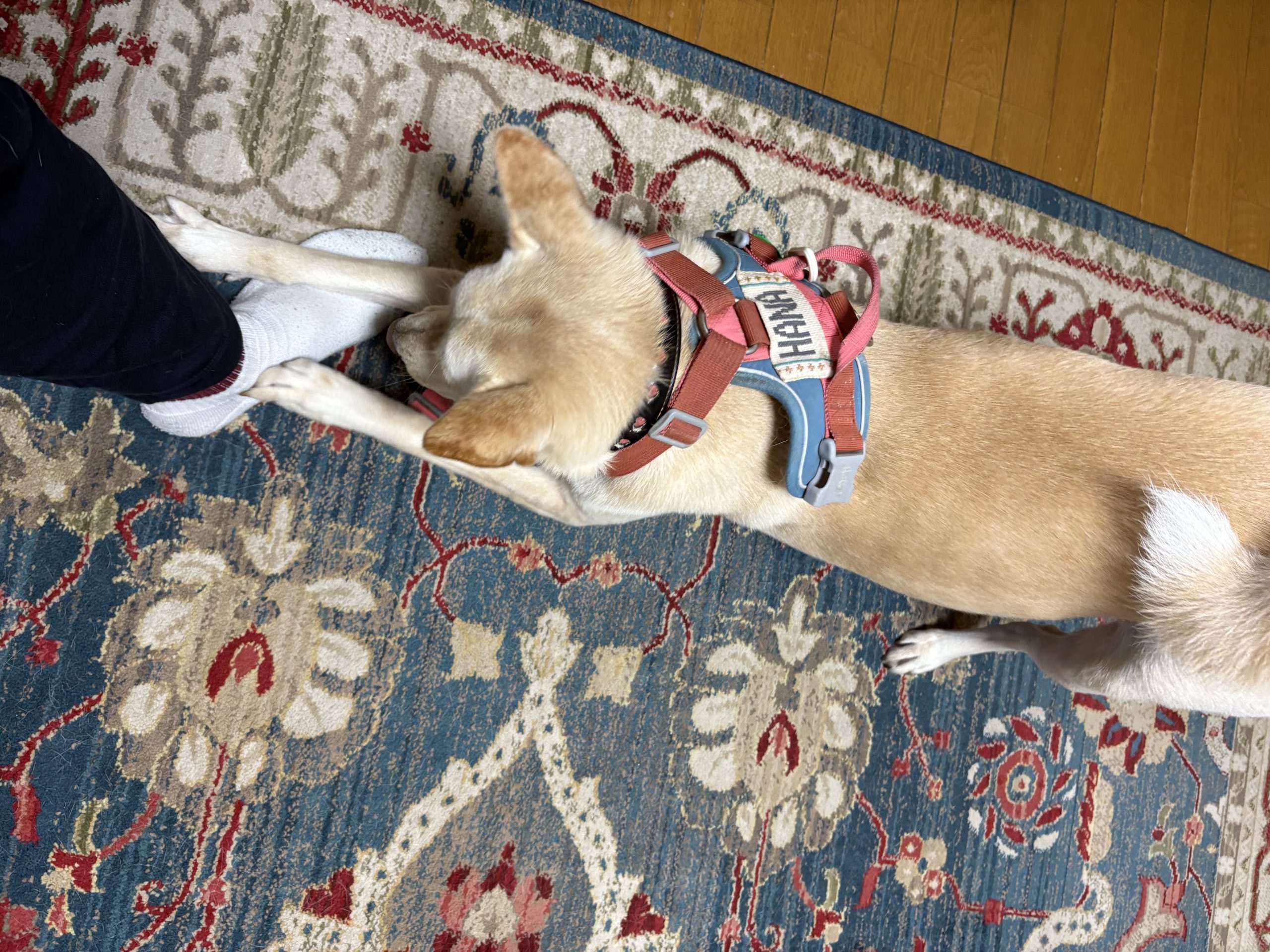 【ハナ*うちに来て4年292日目】おもちゃを見つける ハナの日々 2025.11.26 朝の散歩はおねだりしてくるなどかなり御機嫌。 朝焼けも綺麗で天気も良かったです。少し前まで雨だったらしく、ハナちゃんはお庭でウ○チしませんでした。なんか地面が濡れていると嫌らしいです。 最近になって急に自分でおもちゃを探してくるようになりました。以前からおもちゃの場所は一緒で何回か教えてみたものの何の反応もなかったのに。なぜか最近そこからおもちゃを取り出して自分で勝手に遊ぶようになりました。 なんでだろ?!