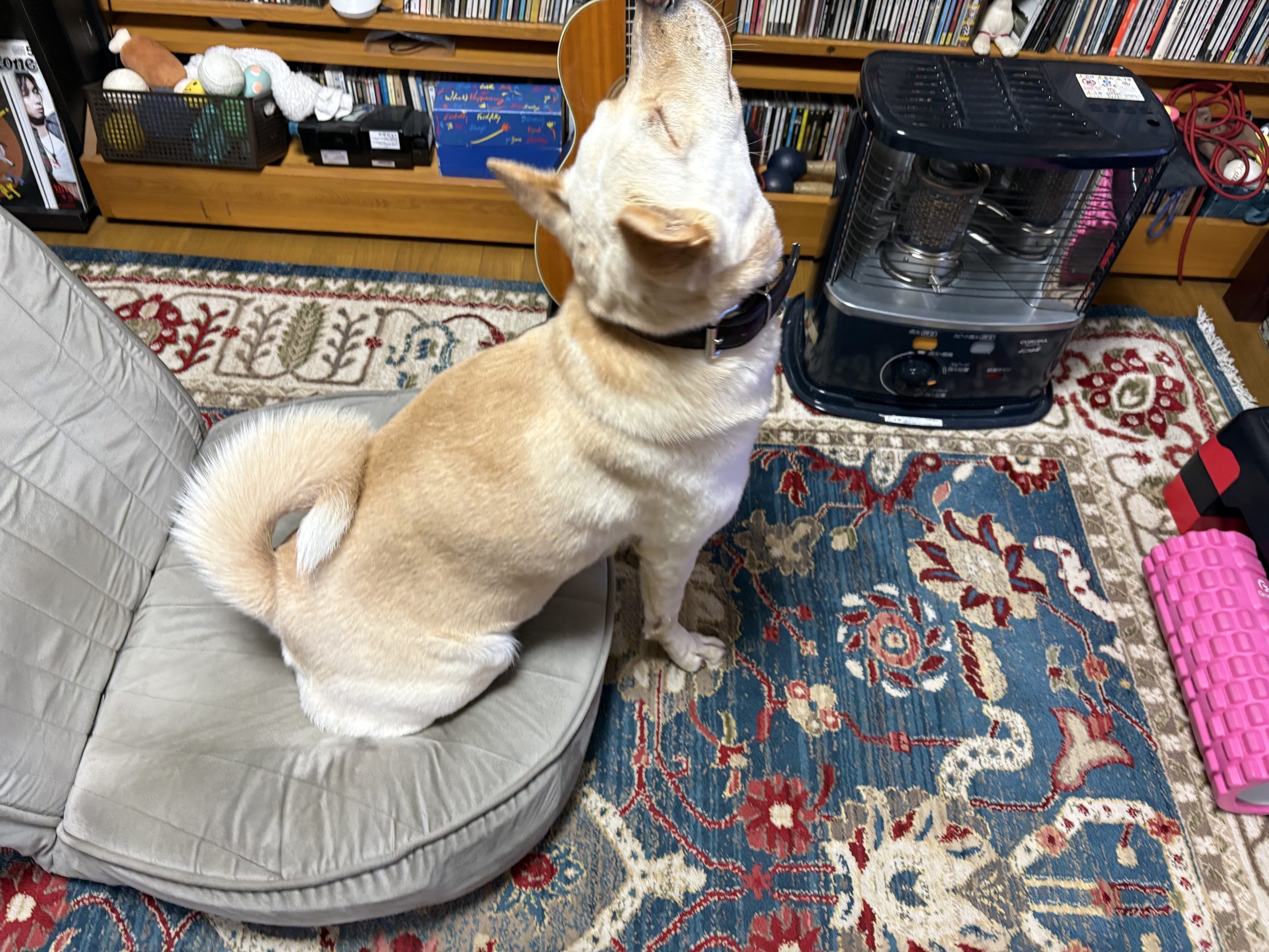 気配を察知して散歩の準備をするハナちゃん。