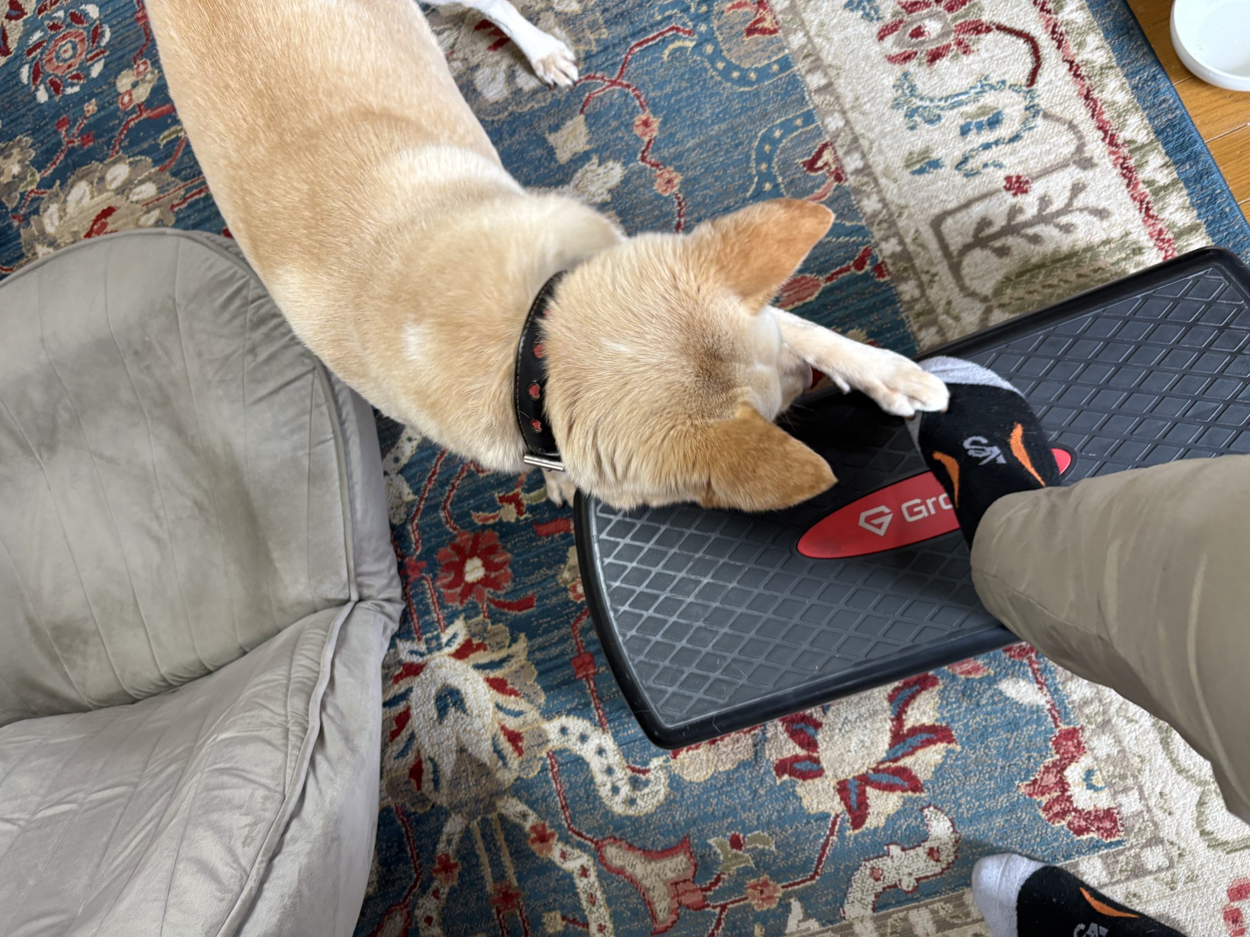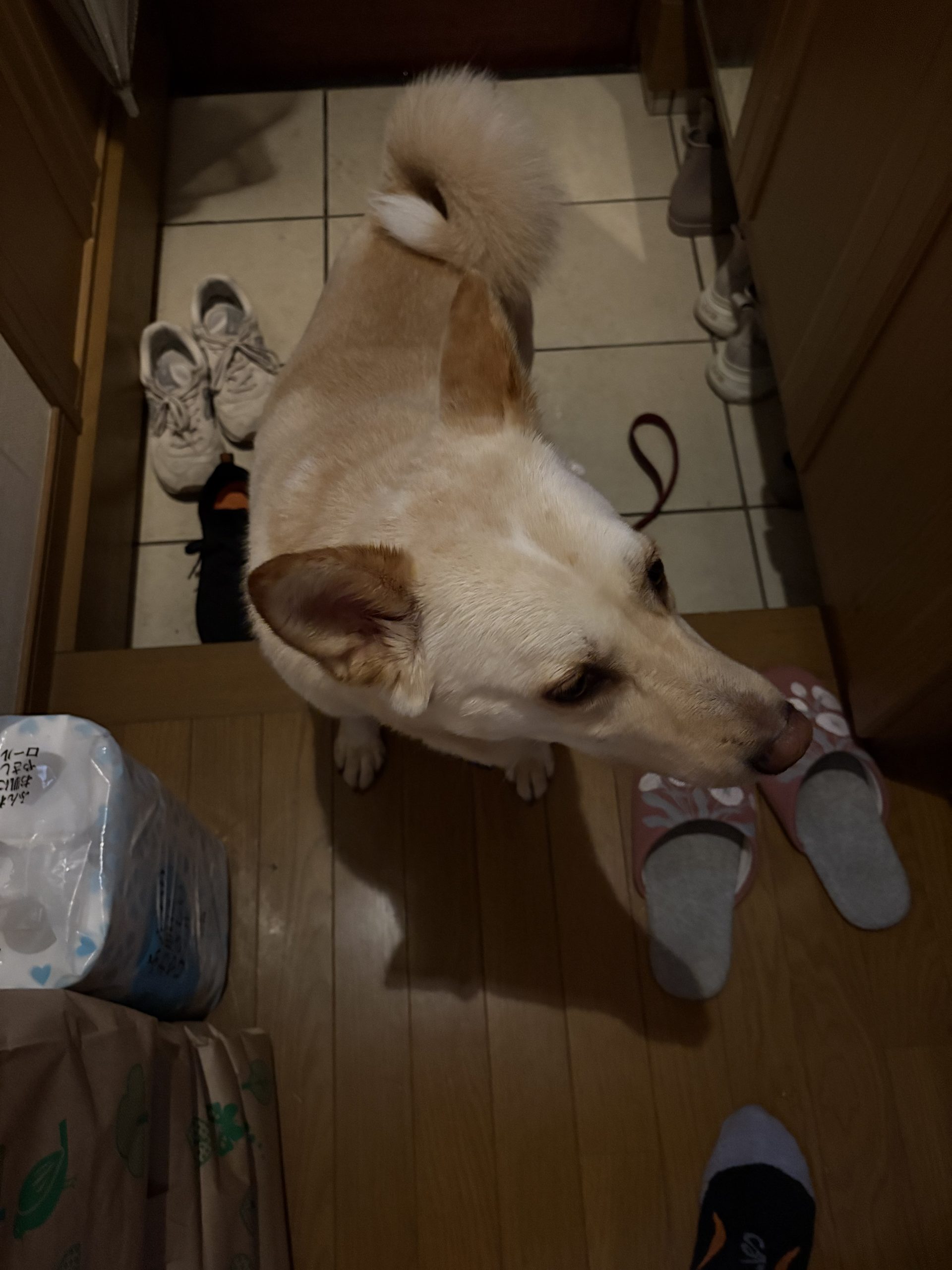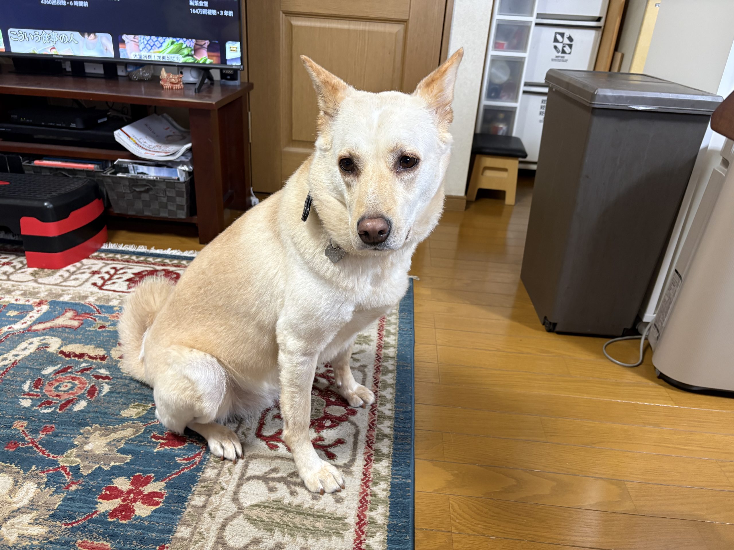 【ハナ*うちに来て5年49日目】雨の日のハナちゃん ハナの日々 2026.03.26 今朝は朝から雨。でも何故かハナちゃんは張り切って自分から玄関に出て行って待ってます。とはいえ結構降っているのでせいぜい庭に出るくらいですが、分かっているのでしょうか。その後も外に出たそうにしています。ウ○チしてないからかしら。結局、3回目くらいに庭に出た時にしてくれました。 でも運動不足のせいかなぁ。私が踏み台昇降をしているとちょっかいを出してきます。結局その後ひとしきり遊んであげないとずっとちょっかいを出してきます。