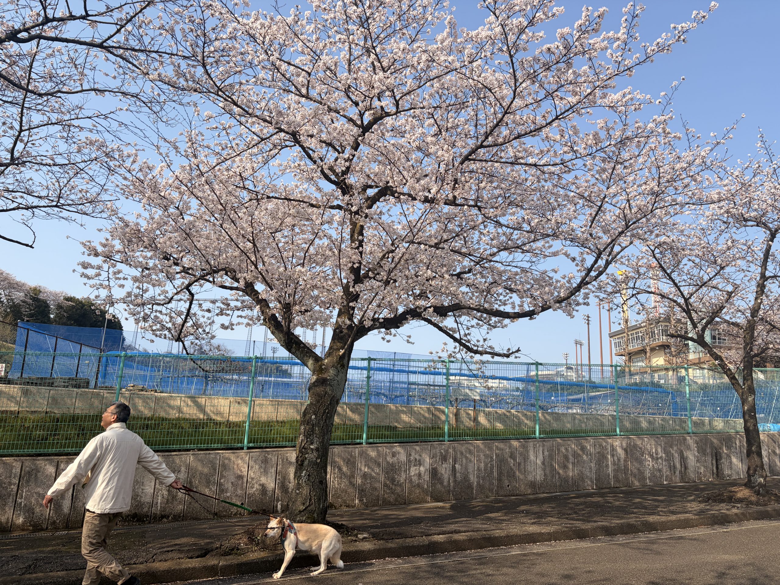 桜はほぼ満開で、昨日より天気が良くて、暖かいというか、暑かった。