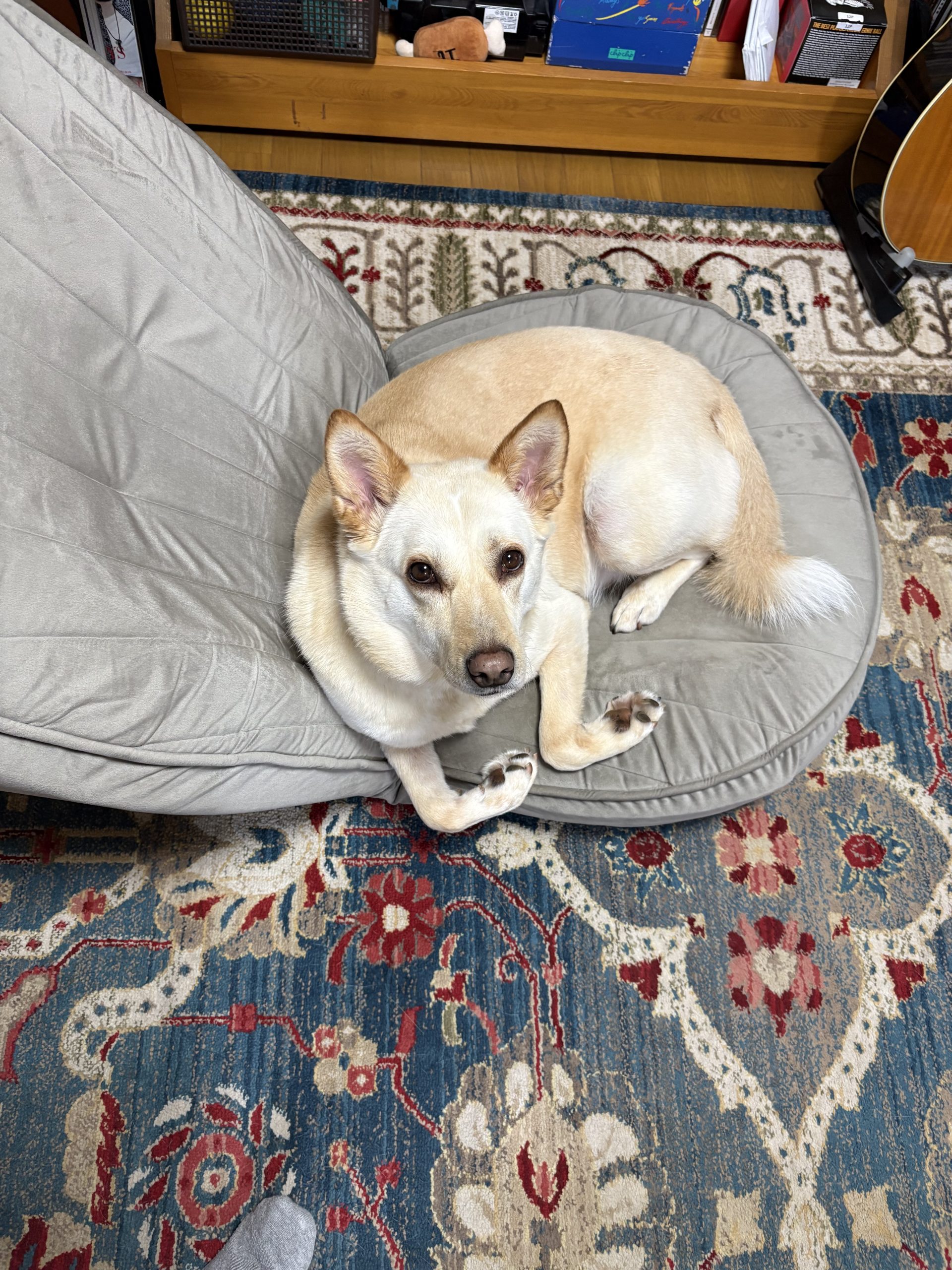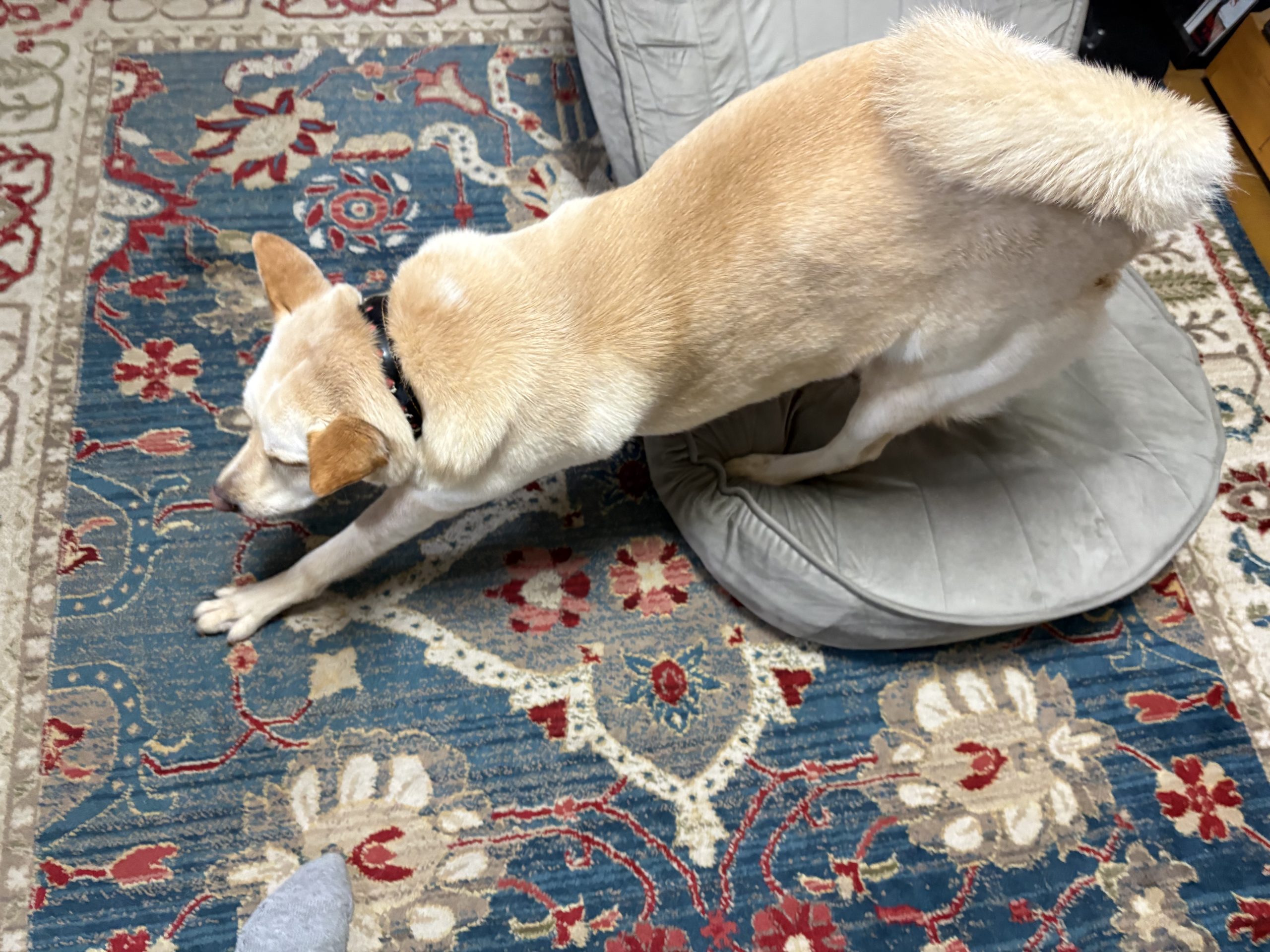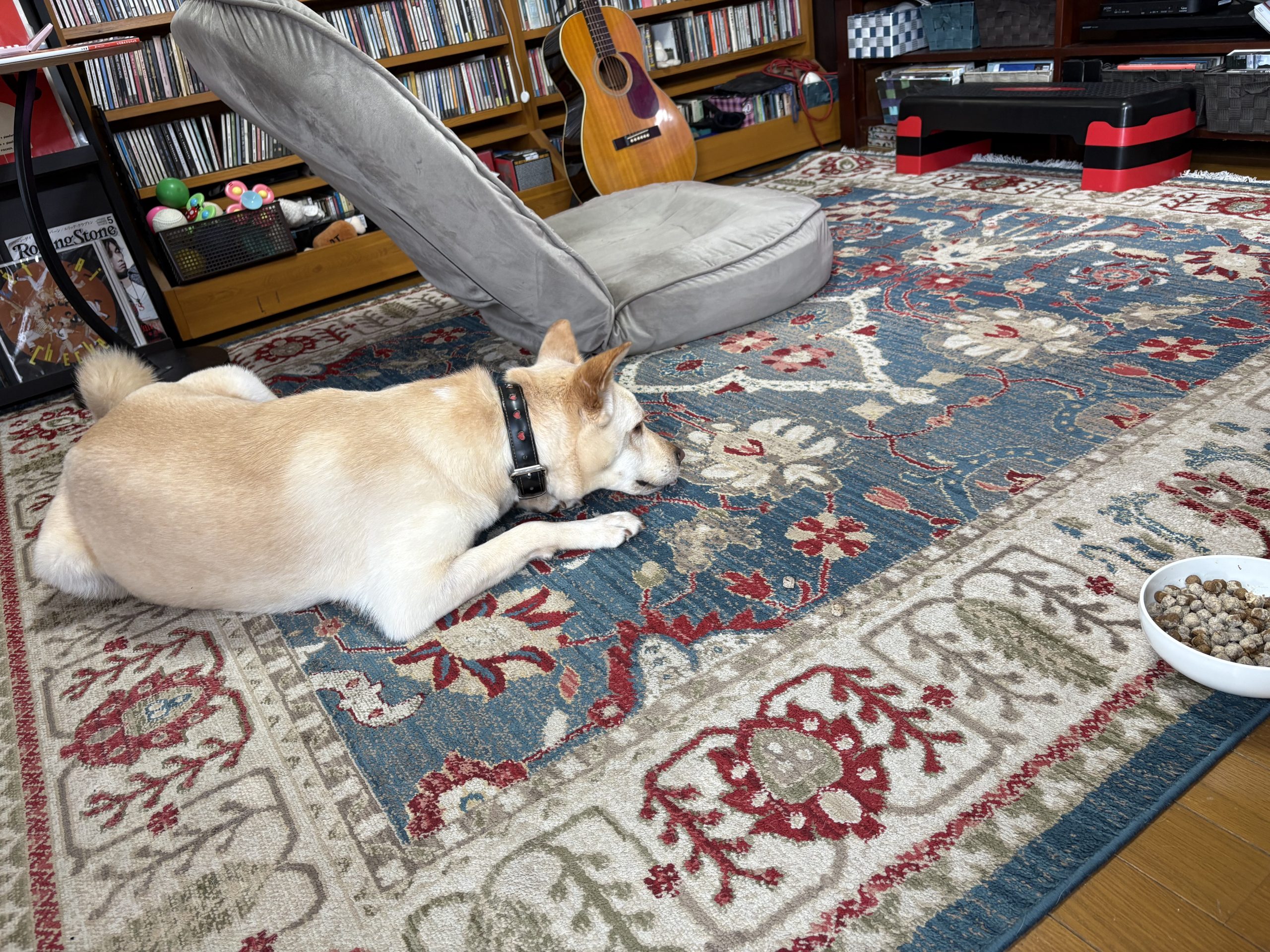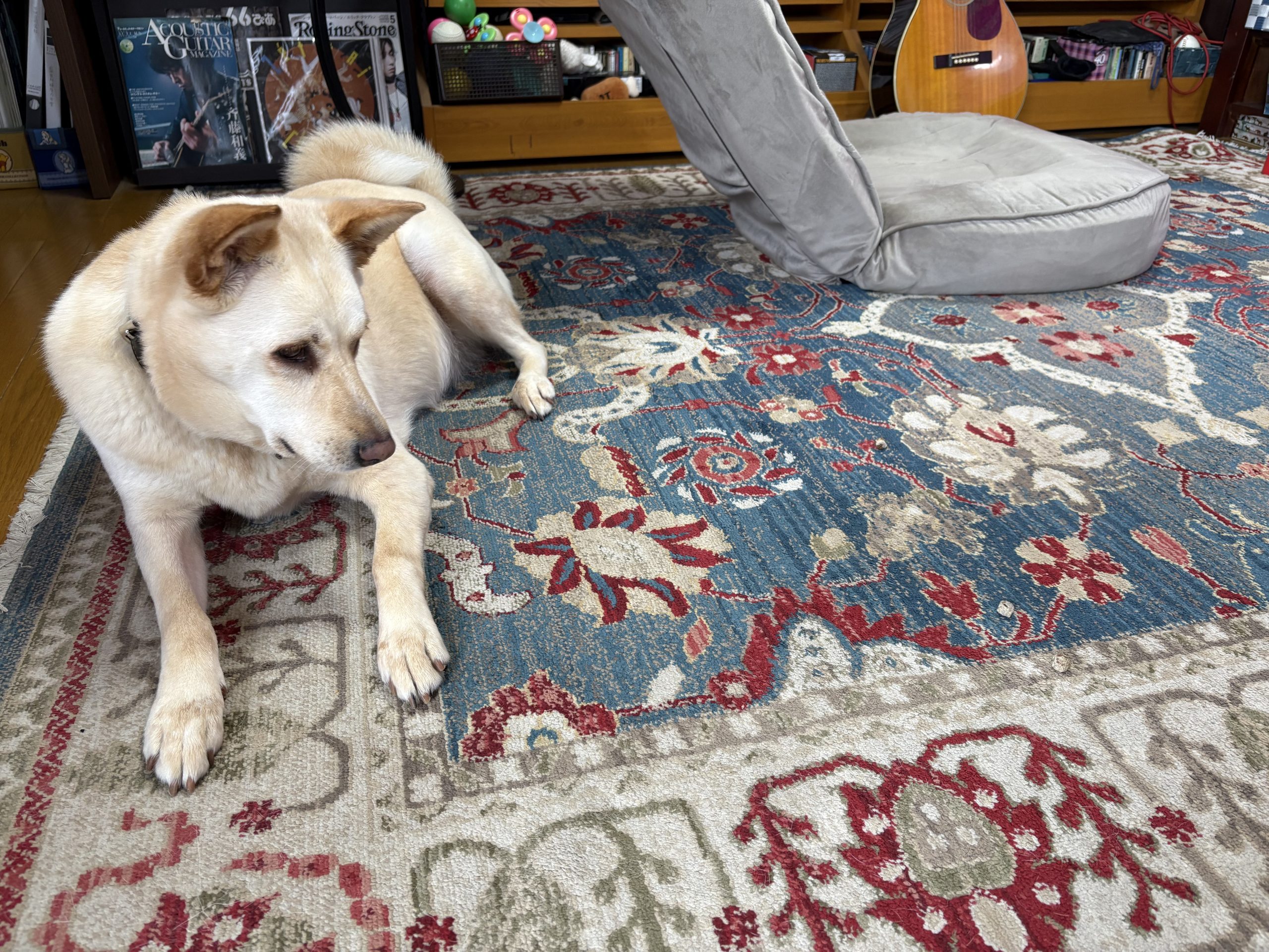 【ハナ*うちに来て5年54日目】一日中雨 ハナの日々 2026.03.31 今朝は準備万端で玄関を出たところで雨が降ってきました。なのでお庭でおしっこだけして戻ってきました。 雨がなかなか止まないというか降ったり止んだりを繰り返す感じで散歩のタイミングがない。ハナちゃんは運動不足でしょうか朝ごはんで遊んでました。 こちらは夕方「ハナちゃんトイレいく?」って聞いた時の様子。なかなかカメラ目線をしてくれないハナちゃんですが、カメラ目線で行きたい意思を示しました。 とりあえず伸びしたら行きますか。