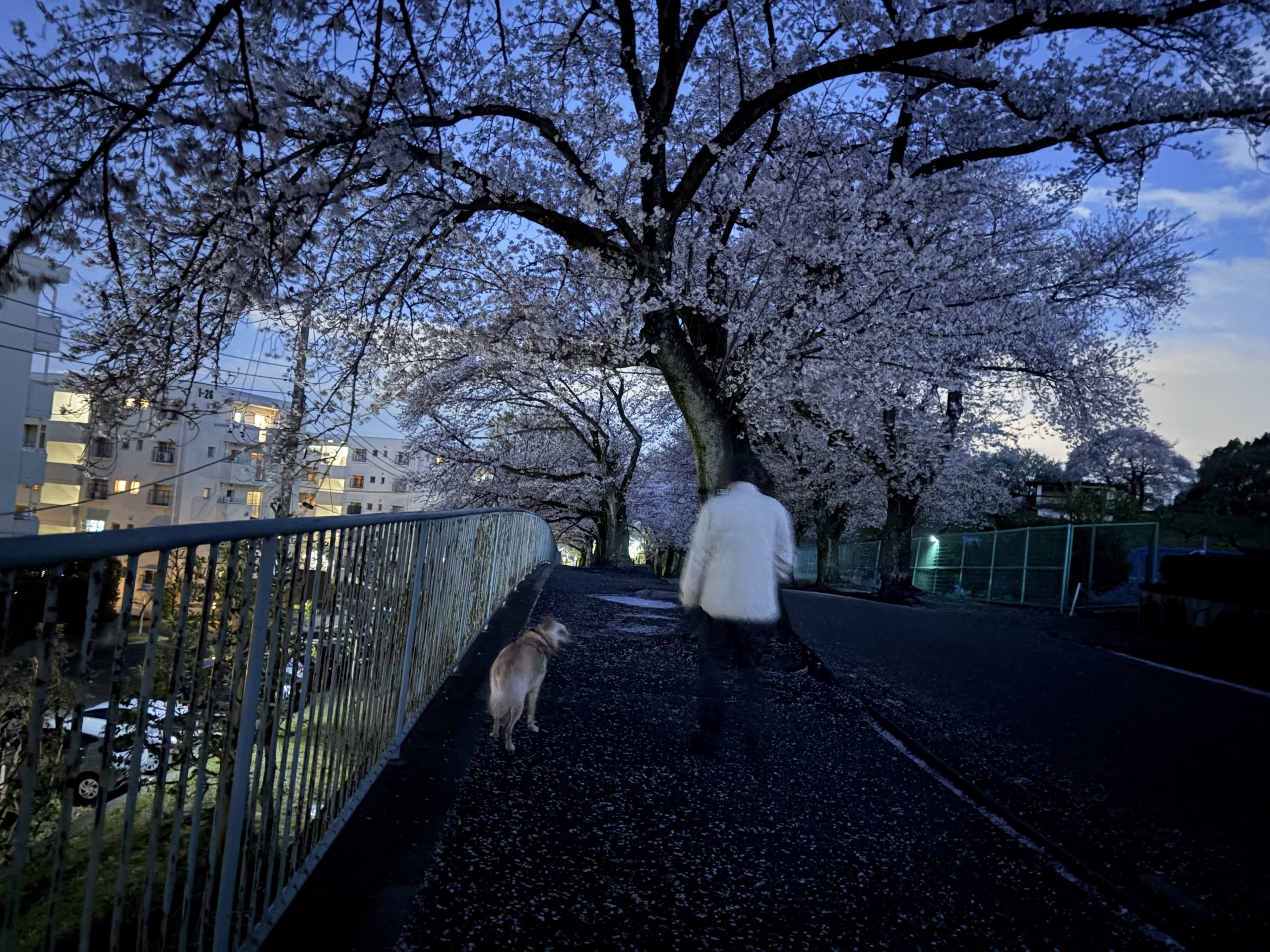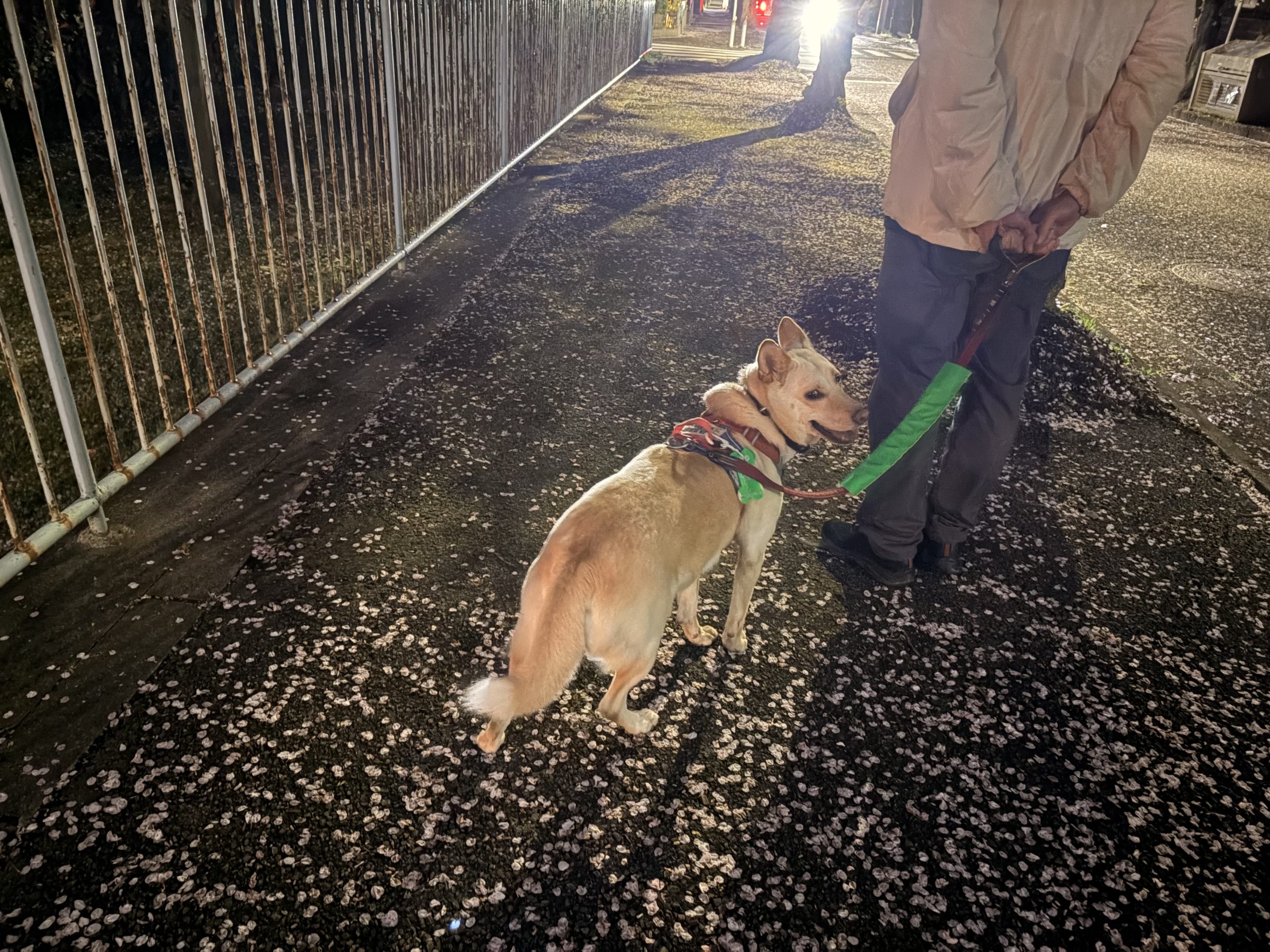 今日は夜の散歩はママと一緒。