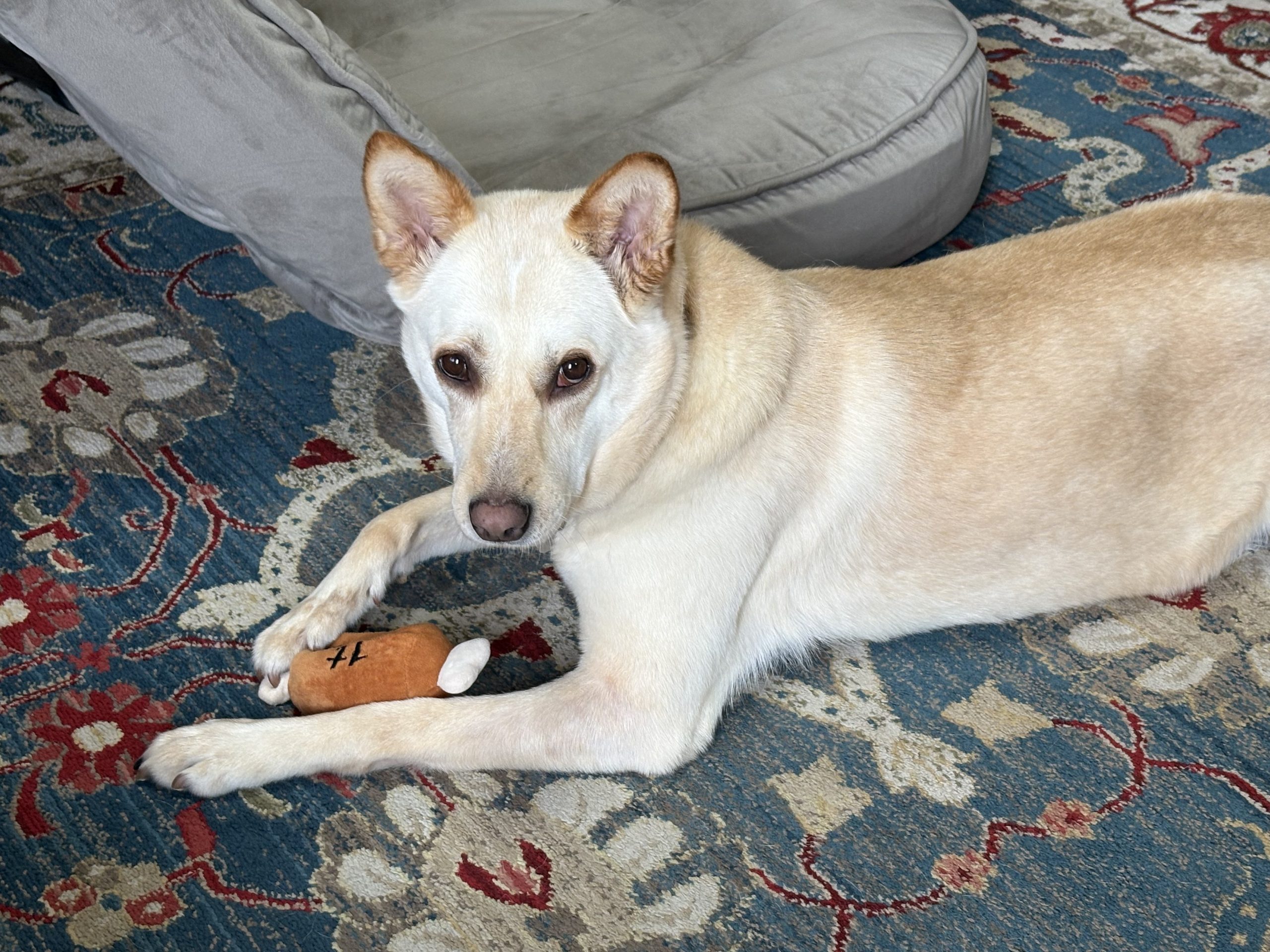 とりあえずおもちゃを与えて気を紛らしてもらいます。