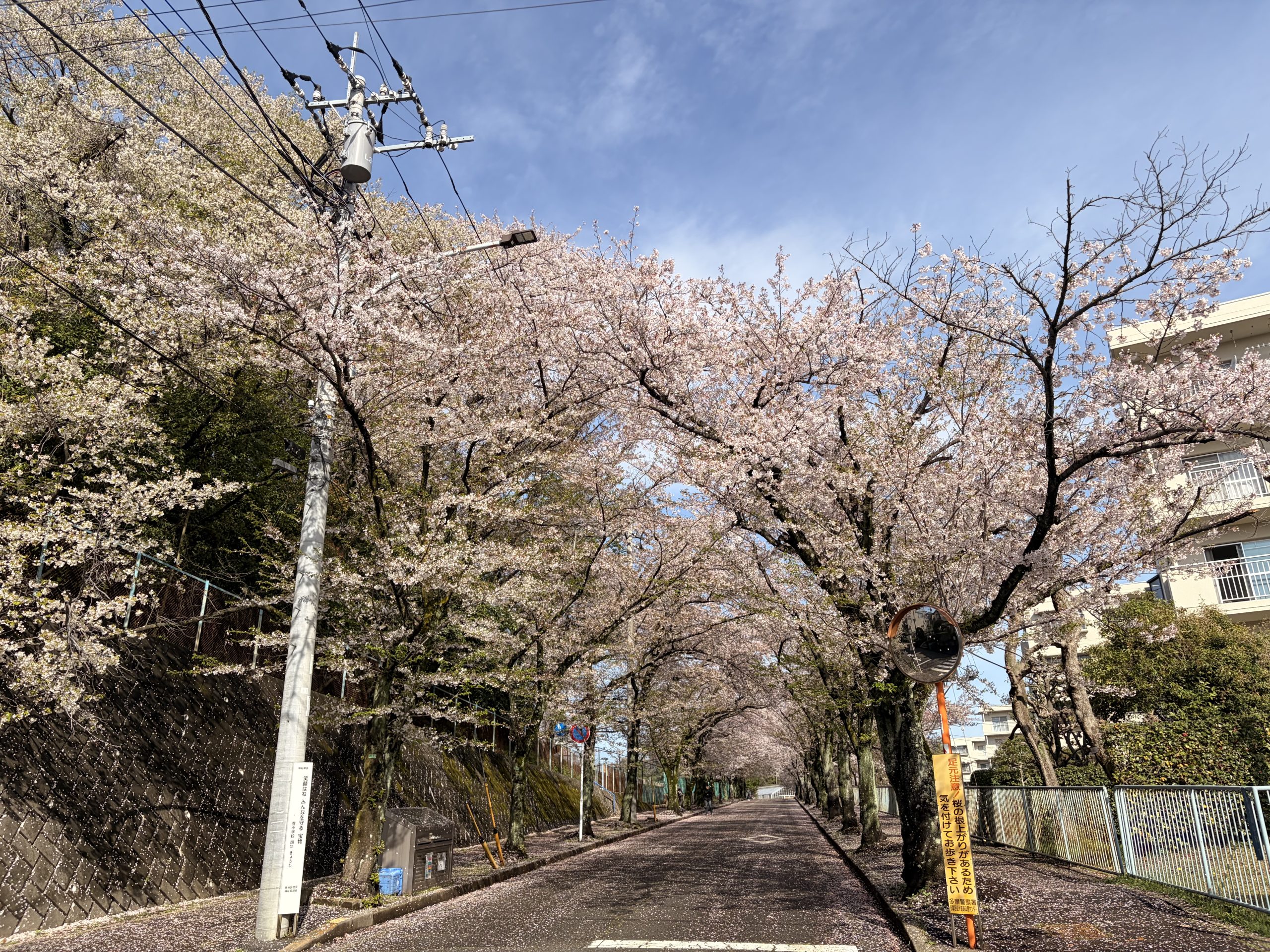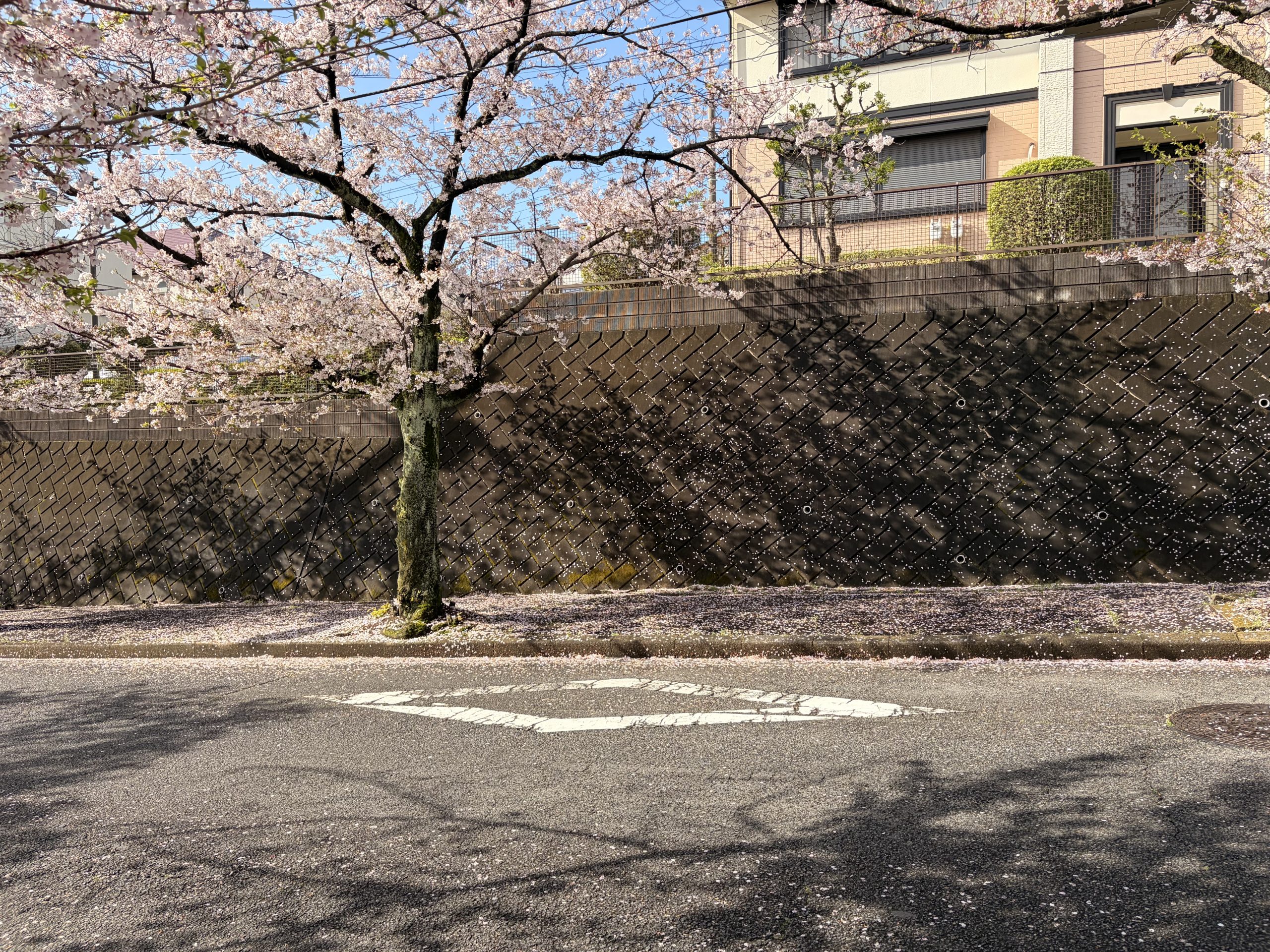 道路は花びらの絨毯。壁にも花びらがくっついています。
