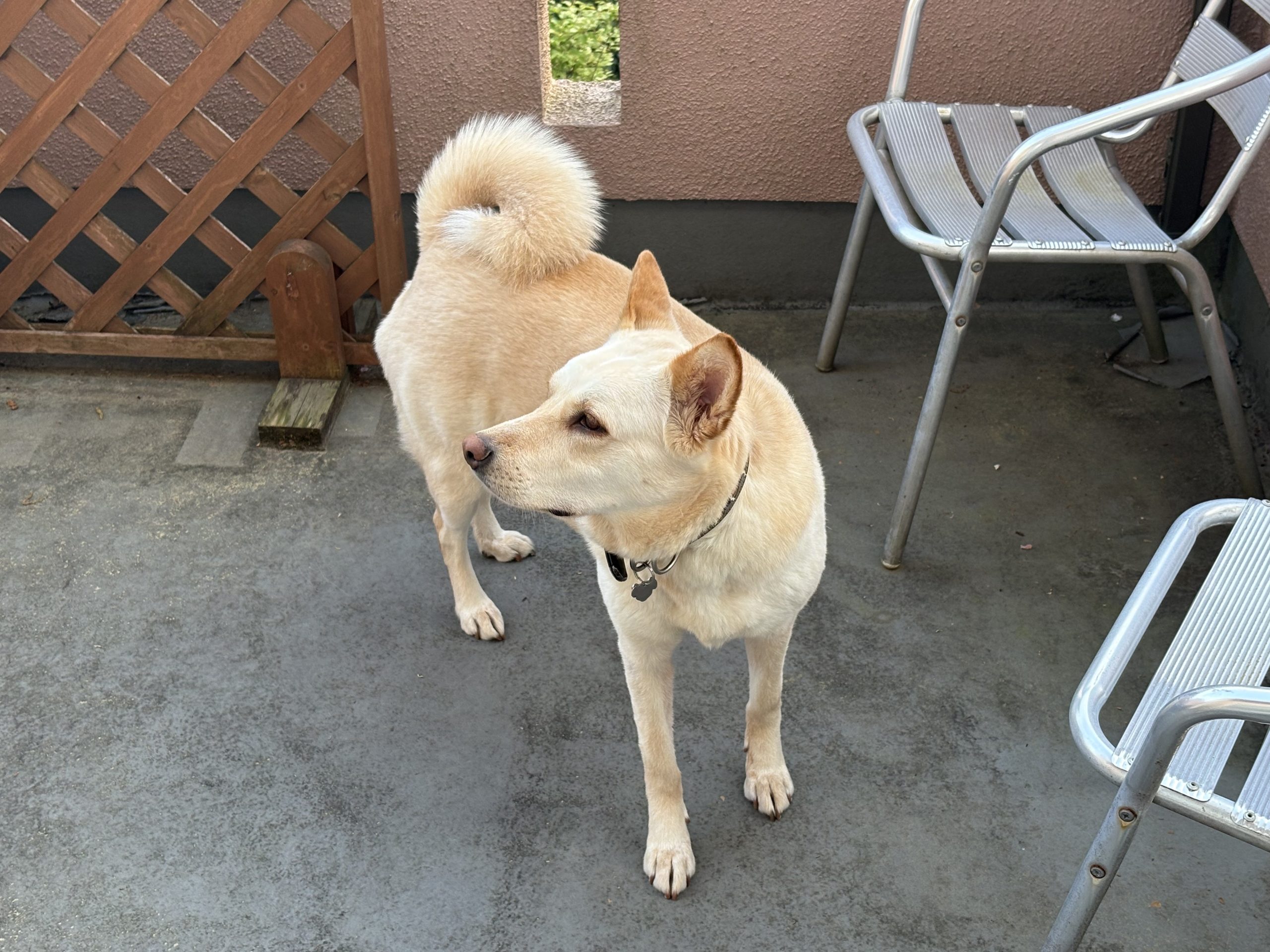 今朝の散歩前、何故かベランダに出るハナちゃんでした。昨日暖かかったので今朝は少し寒く感じる。