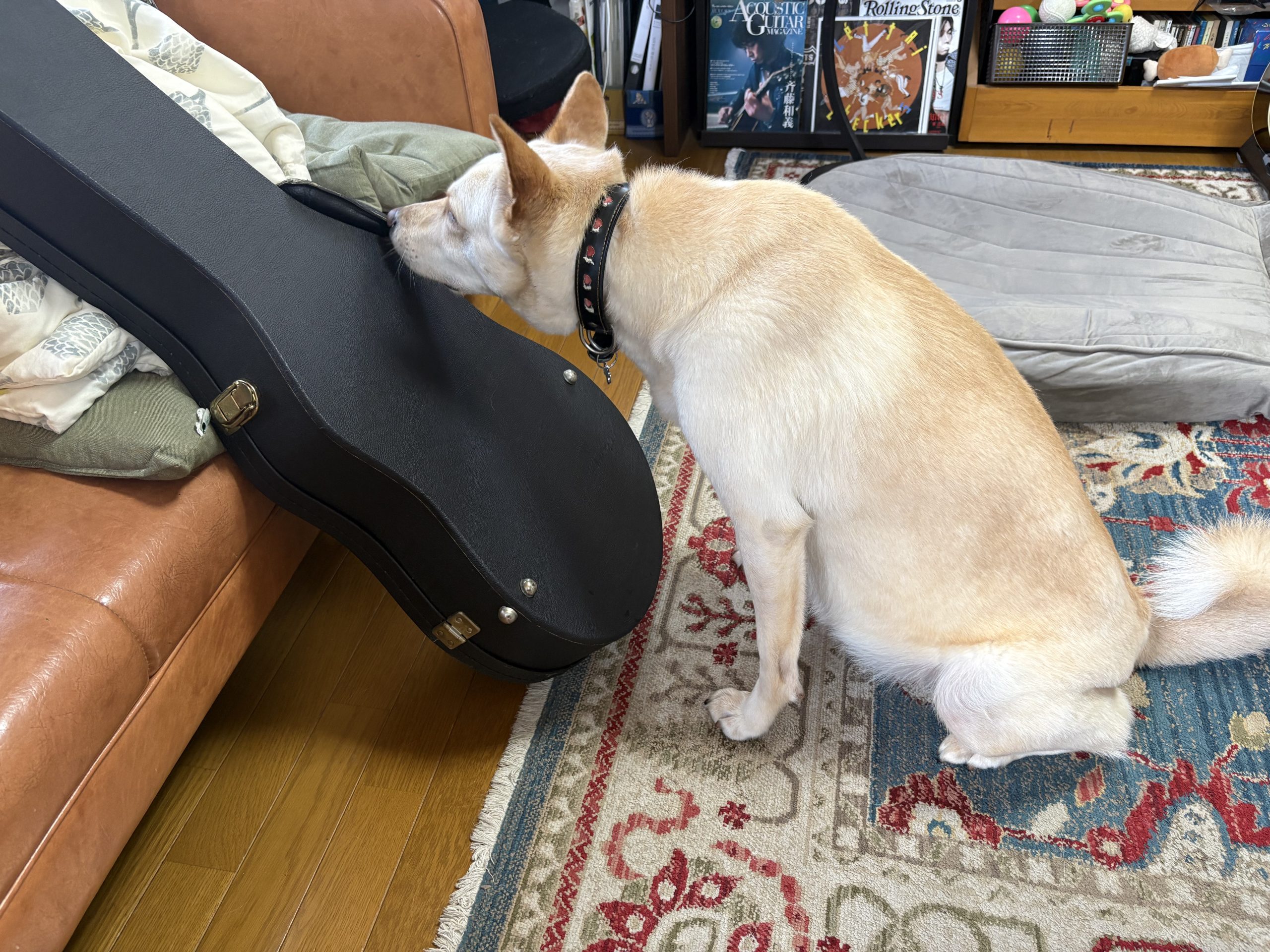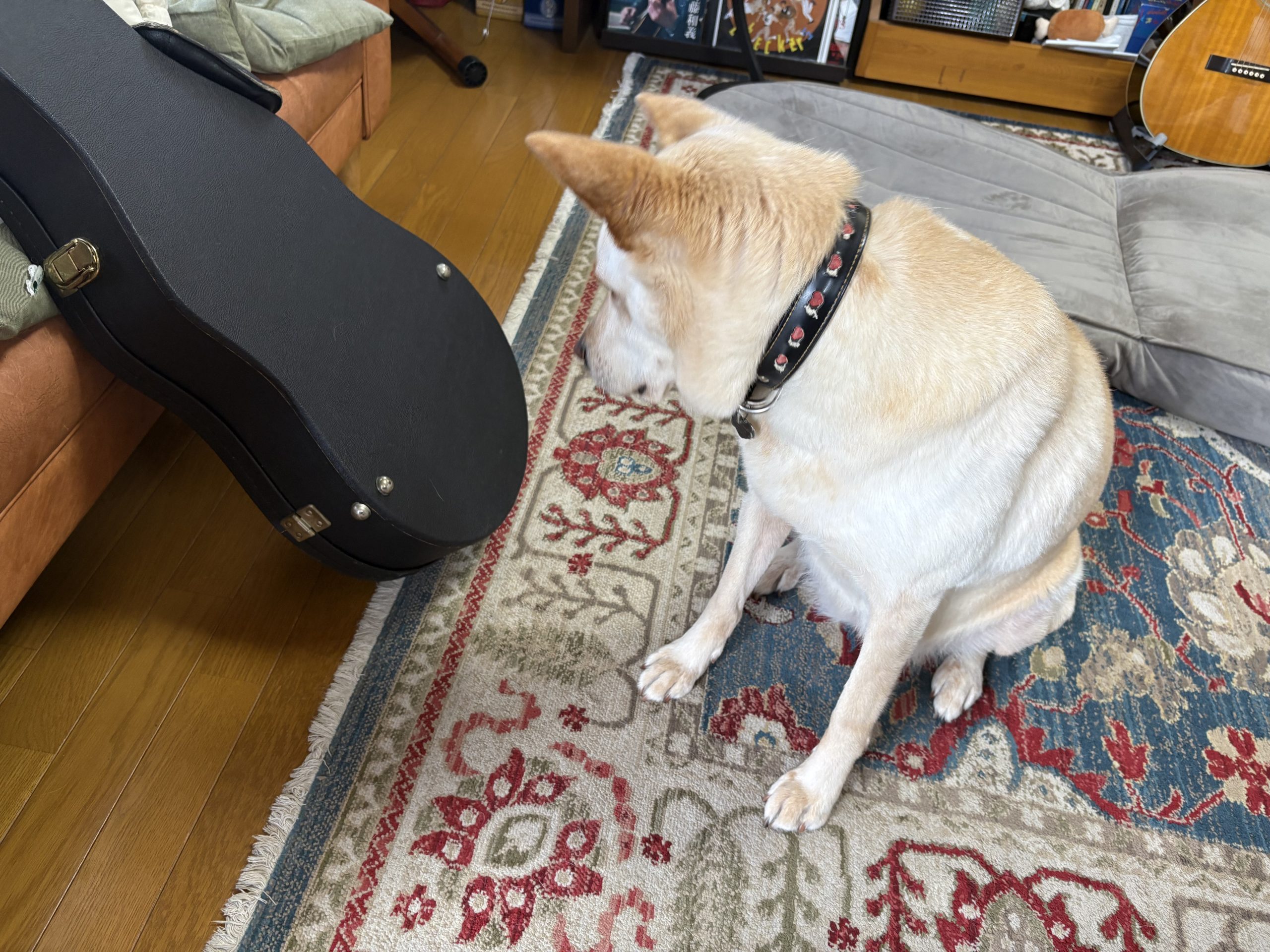 【ハナ*うちに来て5年68日目】クッキー2 ハナの日々 2026.04.14 菜の花とハナちゃん。今朝は鱗雲(?)っていうのかしらなんかこんな感じの雲。 今日は修理に出していたギターを受け取りに行きました。「何これ」 クンクン。「何これ」 今日はバナナとオートミールのみで作った。もうちょっと焼き時間を伸ばしてもいいみたい。とりあえずそんなに悪くないのができた。