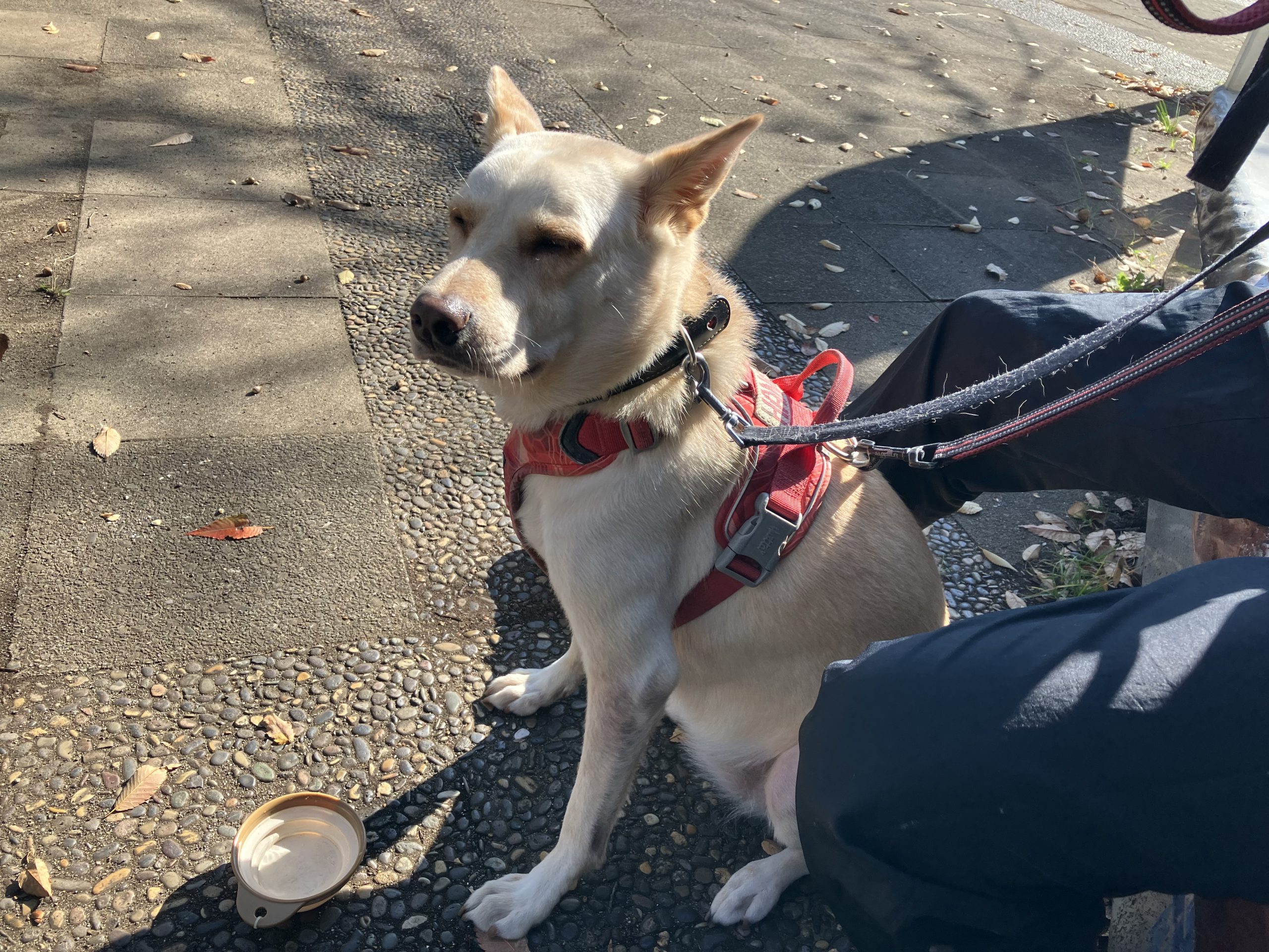 【ハナ*うちに来て3年272日目】秋晴れ散歩 ハナの日々 2024.11.03 今日は気持ちの良い秋晴れでした!気温もちょうど良くて快適~! 寝坊してゆっくり散歩に出発したら、お友達に全然会えませんでした。多分今は、夕方4時くらいに散歩すれば会えるんだろうな~。5時だともう暗くなってしまいます。涼しくなるのはいいんだけど、陽が短くなるのは嫌なんだよなぁ。 カイカイはだいぶ収まってきたみたい。脚を舐めたり噛んだりも、ほとんどしなくなりました。9月10月はカイカイの季節 と覚えておこう。